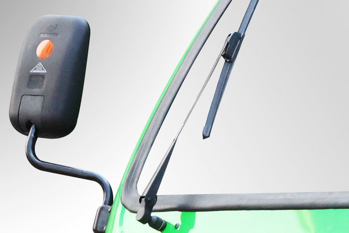 駕駛艙寬大后視鏡及前擋雨刮設計