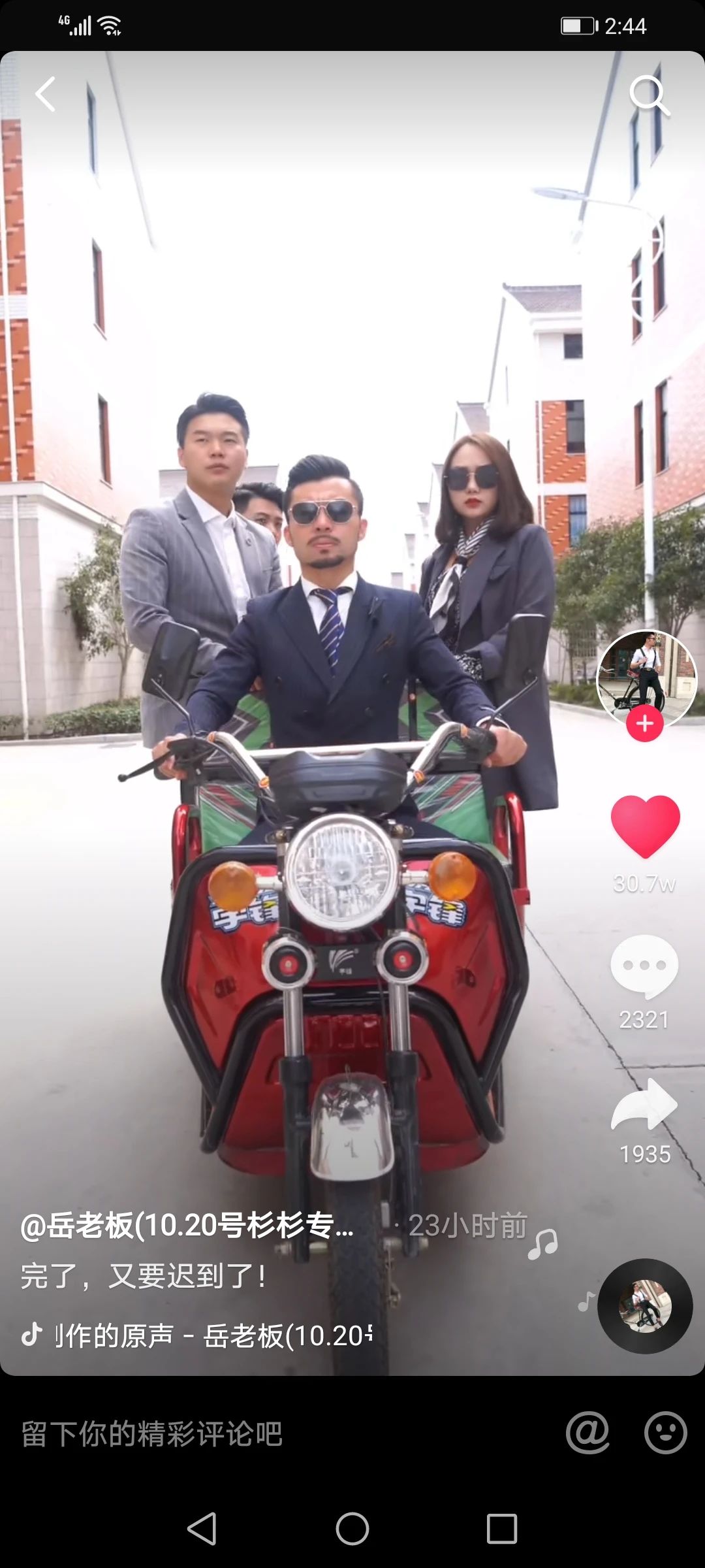 近日,一則岳老板騎宇鋒三輪車去直播的抖音視頻火遍網絡,不到24小時,粉絲點贊量已超過30萬,兩千多粉絲留言評論。