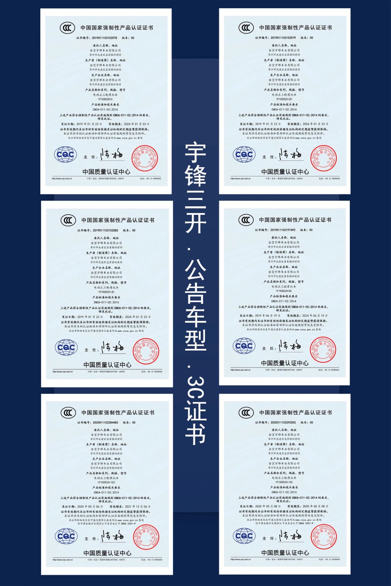 宇鋒電動三輪車部分公告車型一覽表