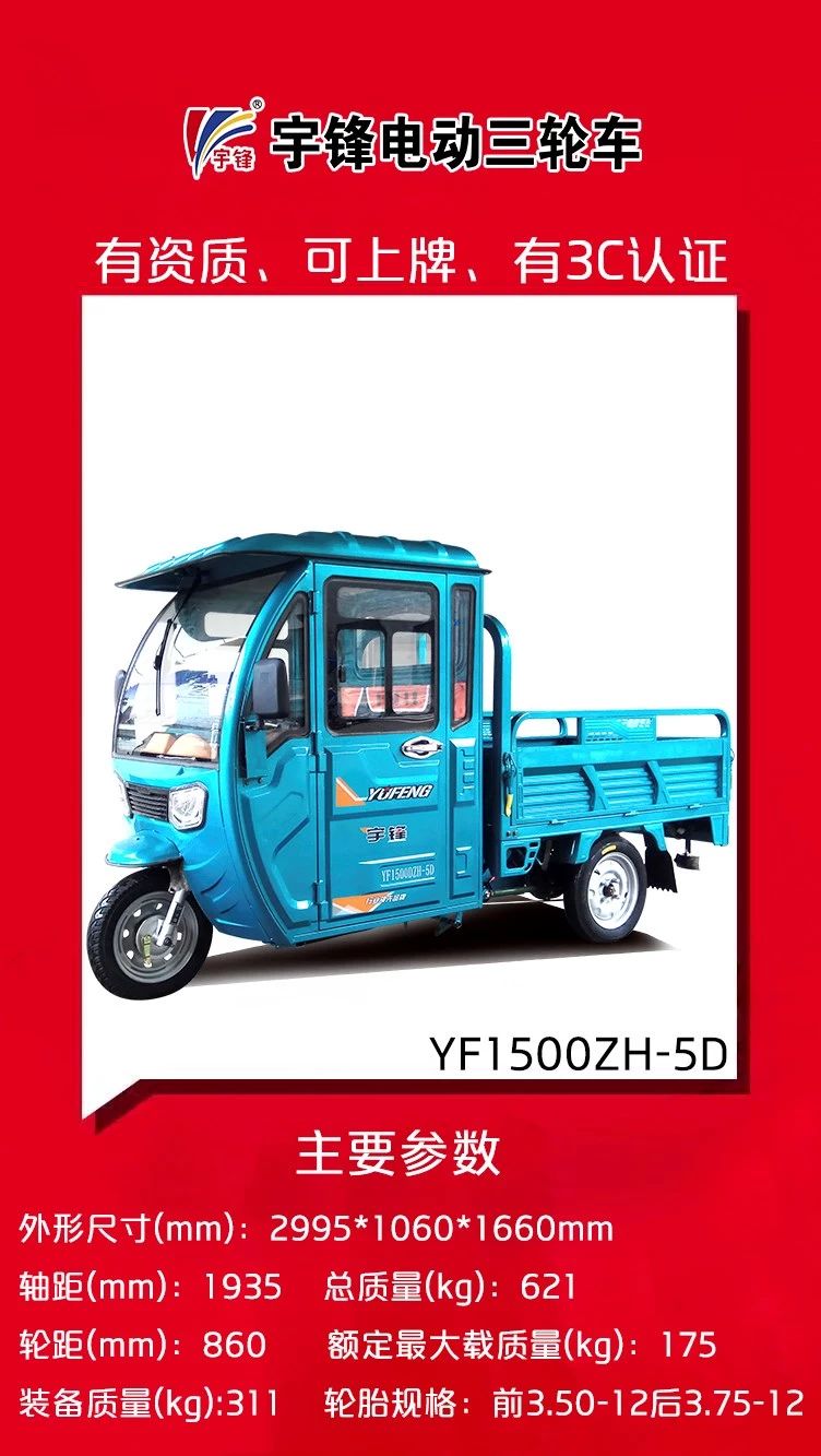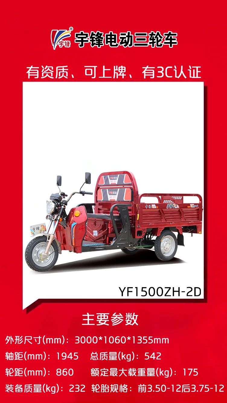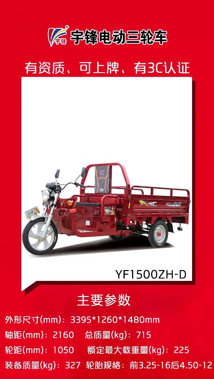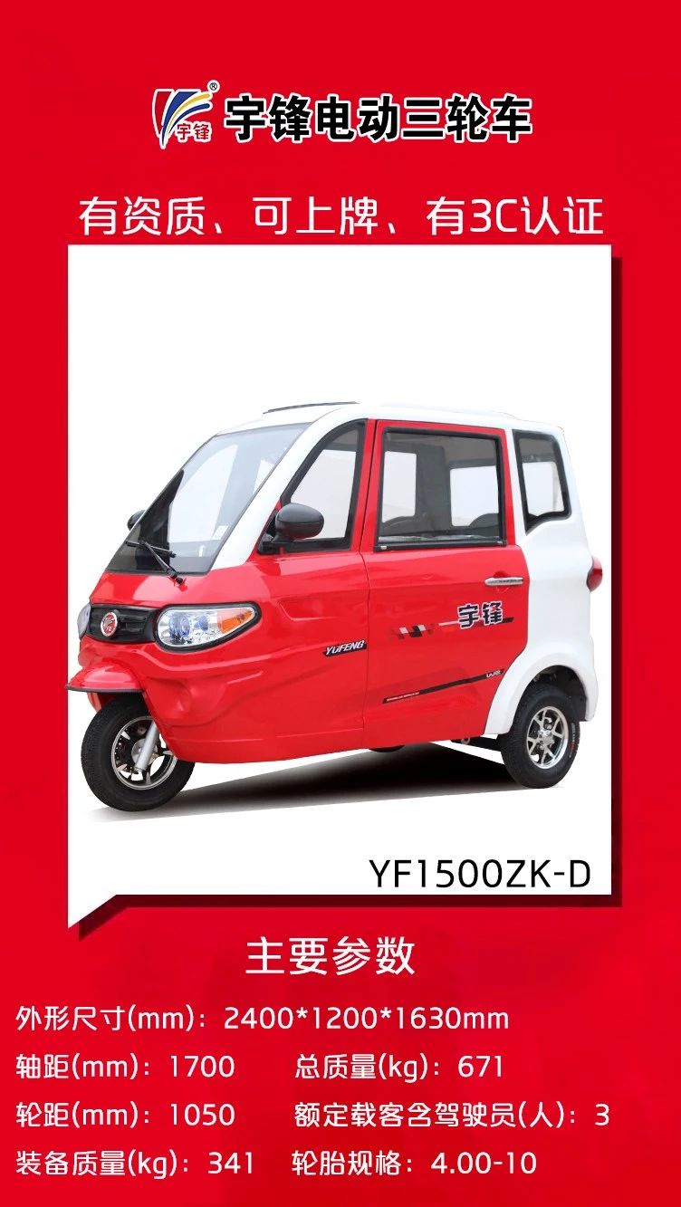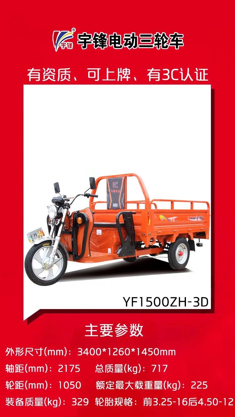 再次,宇鋒三輪車有資質(zhì)、能上牌,經(jīng)銷商方心賣,消費(fèi)者放心買。