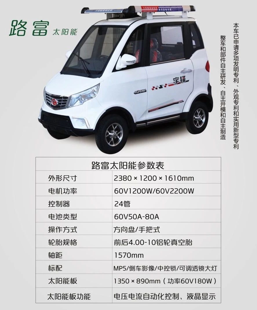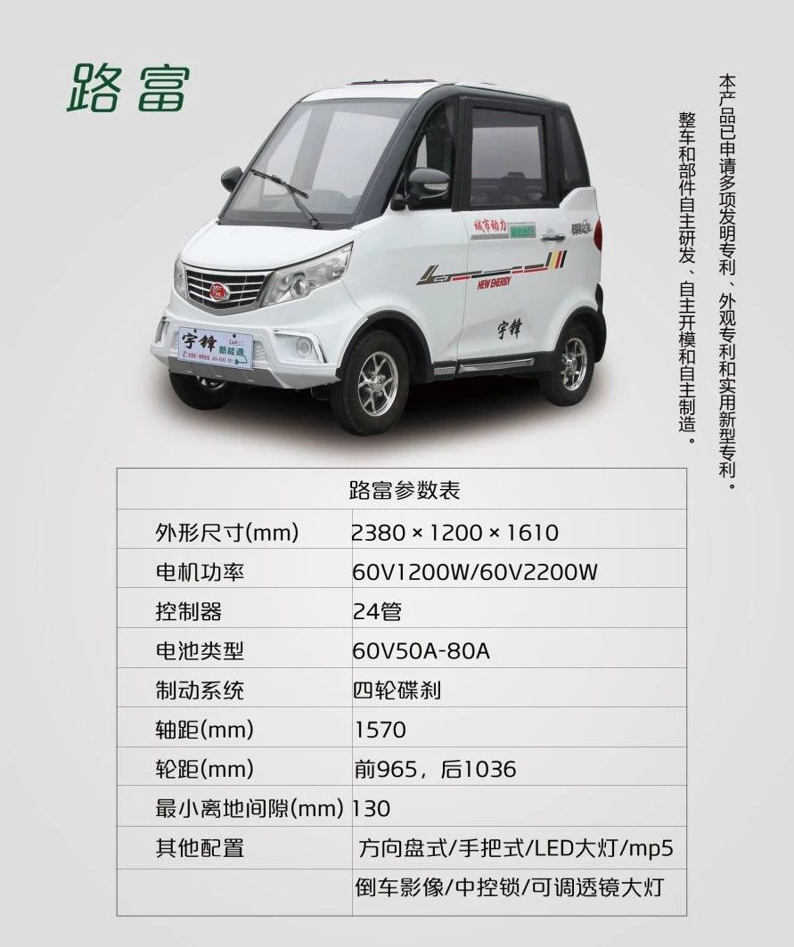 宇鋒新能源----鴻悅,多種顏色搭配,轎車級烤漆,渾然大氣,澎湃動力,舍我其誰?