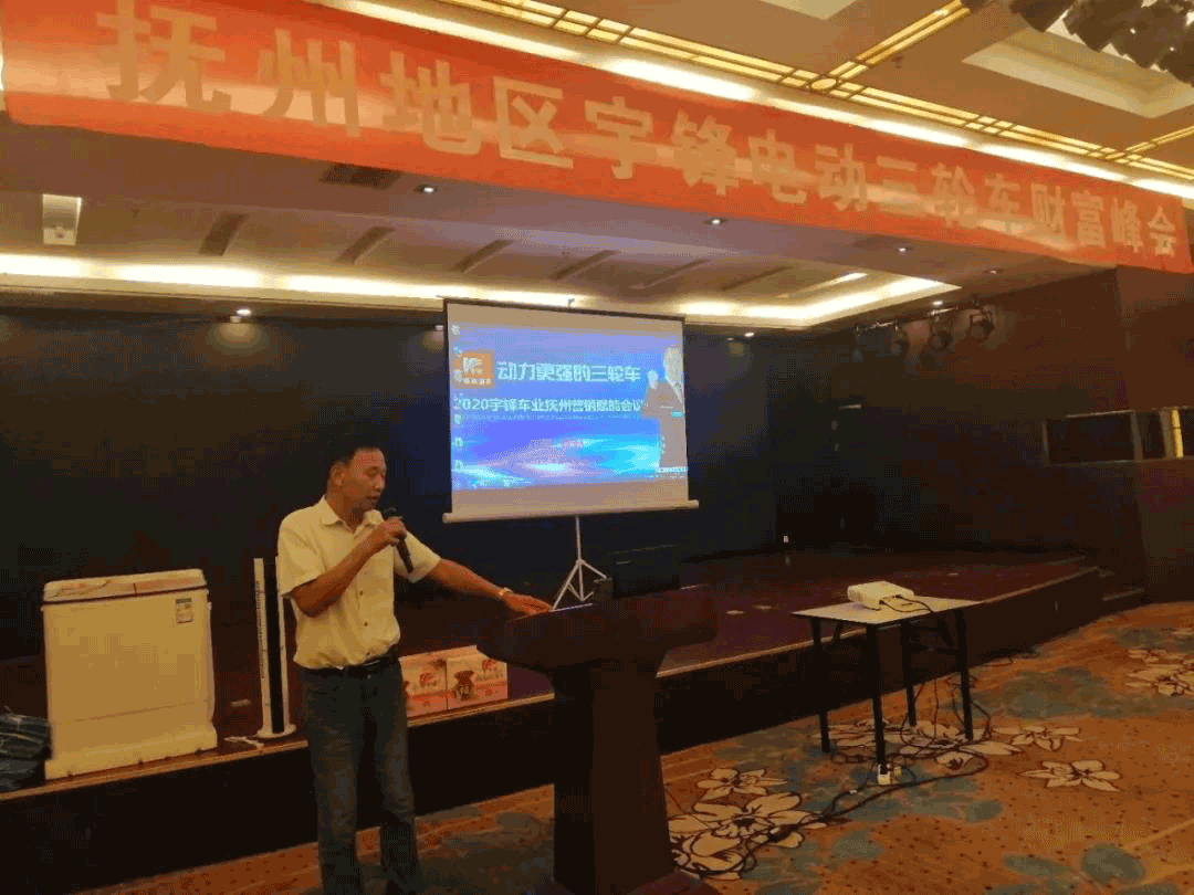2020年9月12日下午,由江蘇宇鋒車業(yè)有限公司舉辦的撫州市場營銷賦能會議在江西省撫州市榮譽國際酒店舉行。